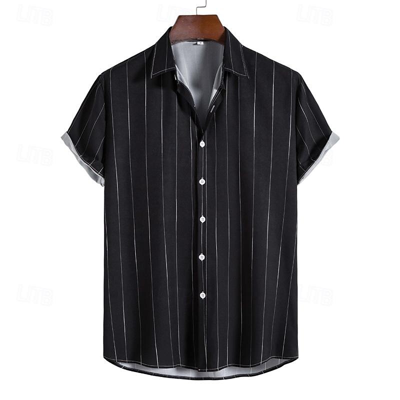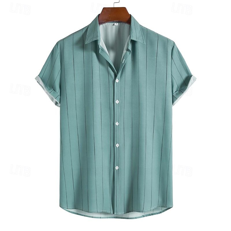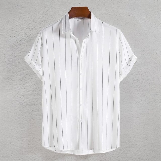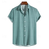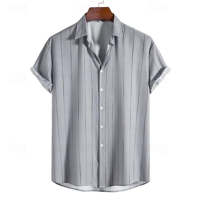 More information about Men's Shirt Summer Shirt Casual Shirt Beach Shirt Button Up Shirt Striped Shirts Black White Blue Green Gray Short Sleeve Stripes Turndown Vacation Hawaiian Clothing Apparel Polyester Fashion Casual