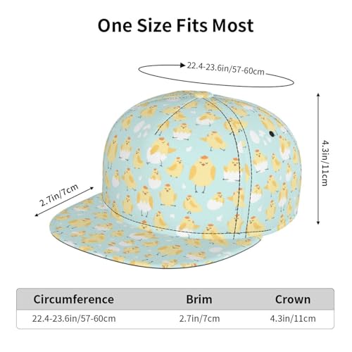 å°鸡 Fashion Flat Brim Baseball Cap – Stylish Unisex Cap with All-Over Print Design – Breathable Lightweight Hat for Daily Wear, Outdoor Activities, and Travel Black 1