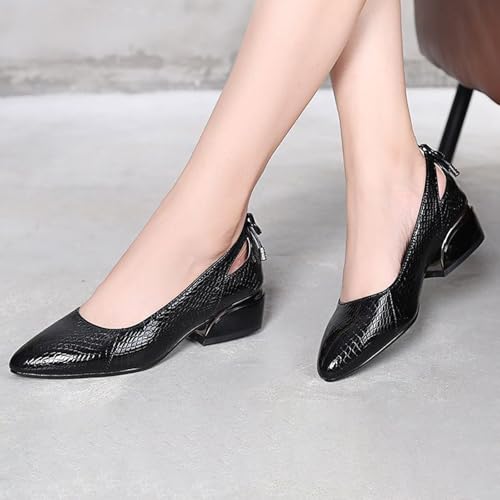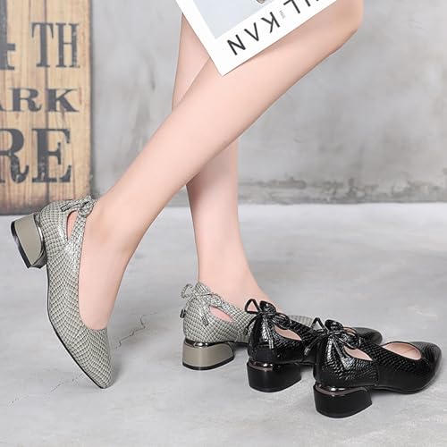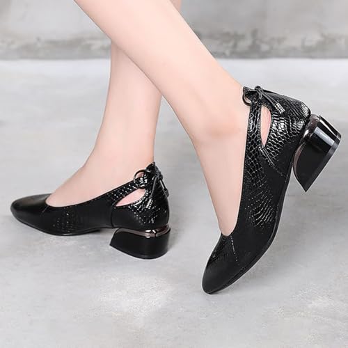 HOT ! Women’s Genuine Leather Print Low Chunky Heel Dress Pumps Sexy Elegant Breathable Wear-Resistant Pointed Toe Shallow Mouth Slip-on Low Block Heel Pumps Shoes for Work Wedding Date