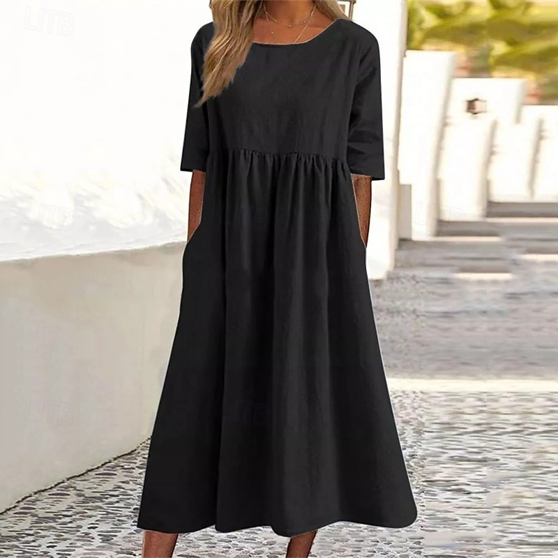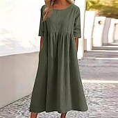 More information about Women's Midi Dress Linen-Inspired Dresses Casual Dress Cotton Linen Dress A Line Dress Stylish Casual Vacation Daily Date Regular Fit Plain Short Sleeve Crew Neck Black Army Green Dark Gray Summer
