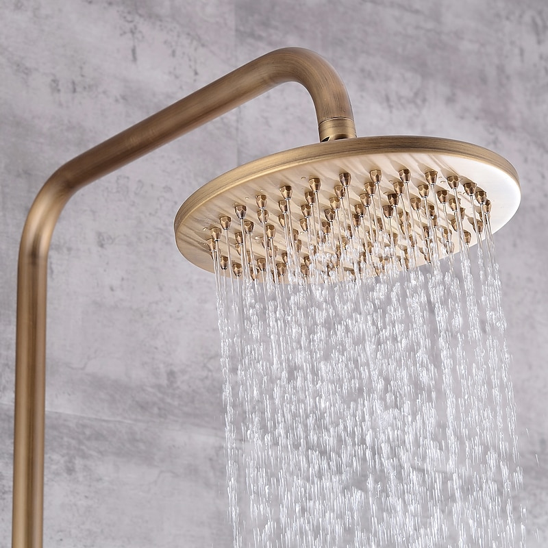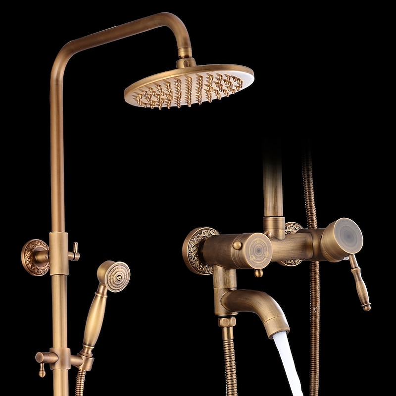 Shower Faucet,Shower System Set Handshower Included pullout Waterfall Vintage Style/Country Brass Mount Outside Ceramic Valve Bath Shower Mixer Taps 10