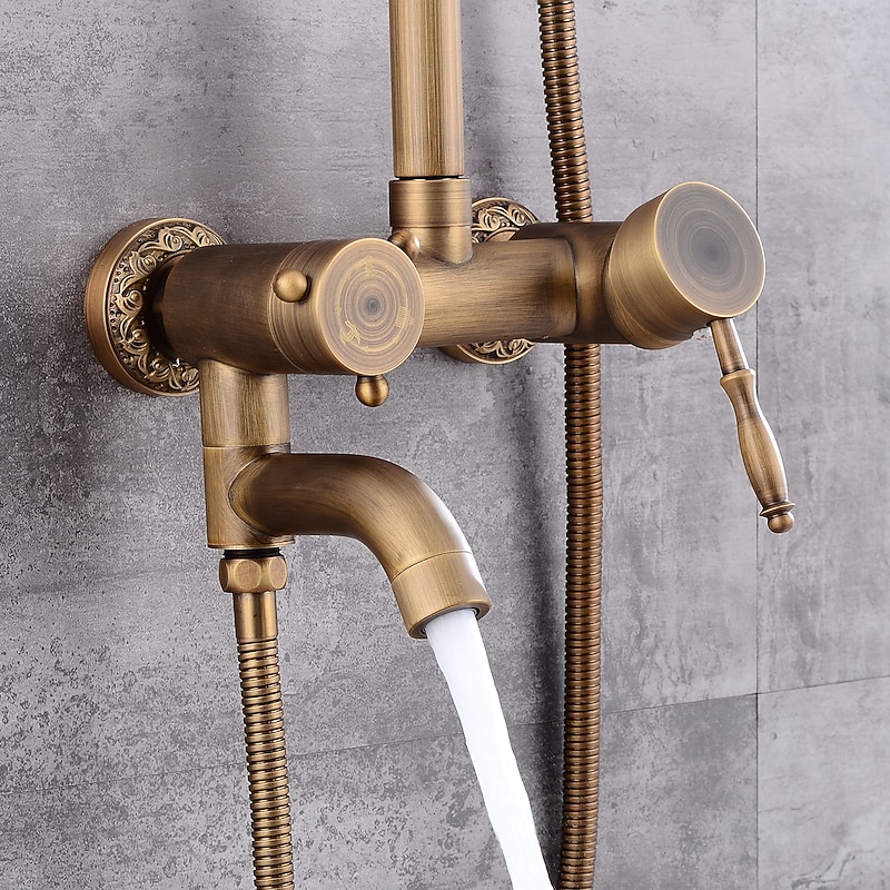 Shower Faucet,Shower System Set Handshower Included pullout Waterfall Vintage Style/Country Brass Mount Outside Ceramic Valve Bath Shower Mixer Taps 1