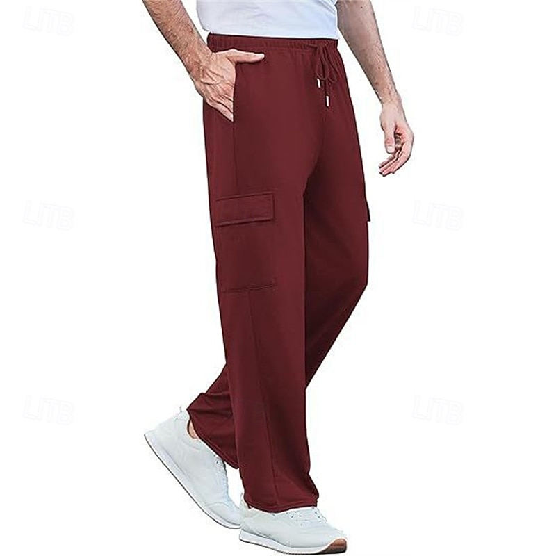 More information about Men's Sweatpants Trousers Cargo Sweatpants Straight Leg Sweatpants Drawstring Pocket Elastic Waist Plain Comfort Sports Outdoor Daily Fashion Casual Black White Micro-elastic