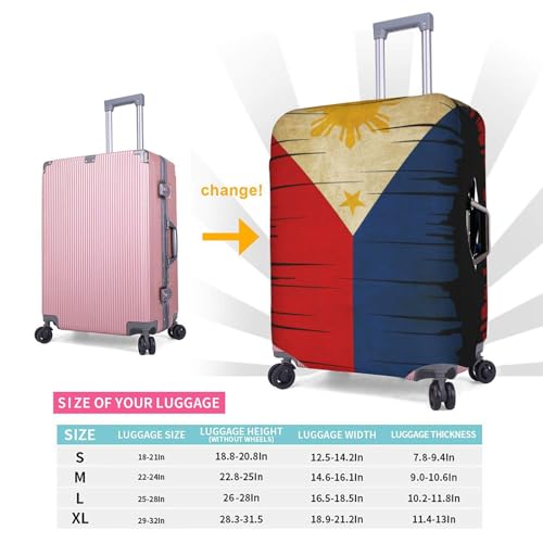 Fashion Baggage Suitcase: Give You A Good Travelling Mood. With The exceptional Vintage America And Philippines Flag 4 Pattern Will Also Help You Easy To Find Your Luggage Quickly And Pick Up At The Airport.Durable And Elastic: This Washable Luggage Cover Is Made Of 100d Polyester Material, Only Include One Luggage Cover, Not Including The Suitcase.4 Size Available:S (Suitable For 18-20 Inch Luggage),M(Suitable For 22-25 Inch Luggage),L(Suitable For 26-28 Inch Luggage),Xl(Suitable For 28-32 Inch Luggage),If Your Luggage Cover Is Soft Shell Style,Please Order A Bigger Size.Unique Design Luggage Covers For Suitcase: 2 Openings At The Top For Telescoping Handle And Carrying Handle, Both Sides Have Zippers For Side Handles. The Unique Design Makes You Easy To Fit And Remove.Applicable Scenarios: For Outings, Business Trips And Other Luggage Protective Cover, Our Suitcase Cover Protector Can Protect Your Suitcase From Dust And Scratches. Perfect for everyday use. excellent materials and excellent craftsmanship ensure long-lasting durability.