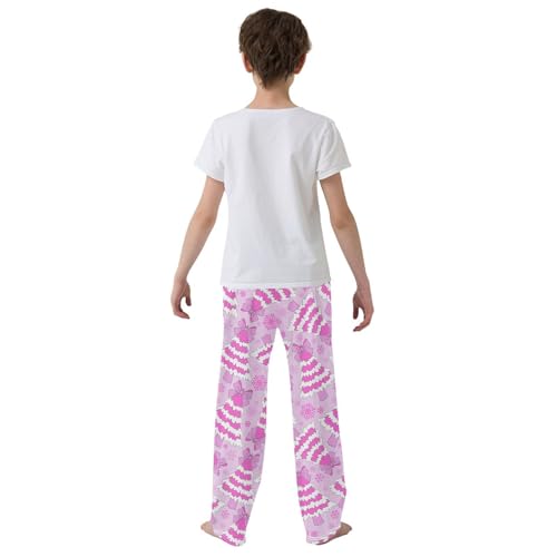 Boys' Pants Pink Doll Christmas Tree Bow Long Bottoms Jogger Pants Elastic Waist Trousers with Pockets S-XL 6