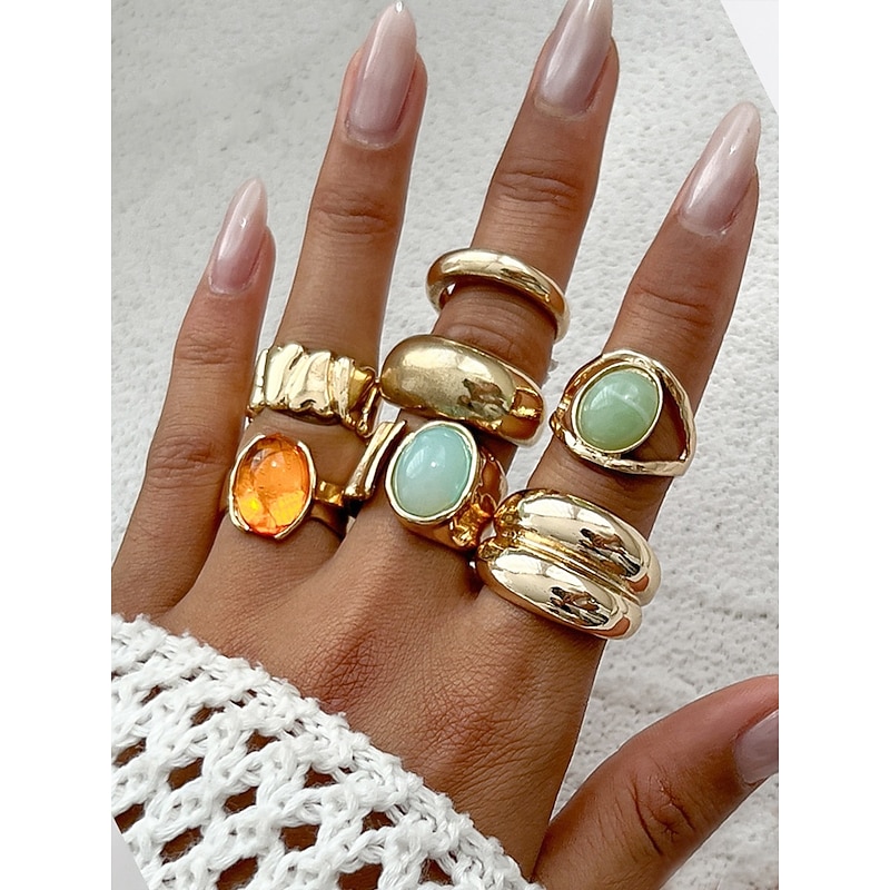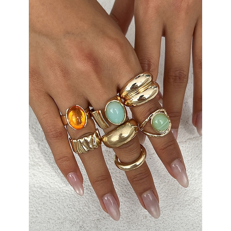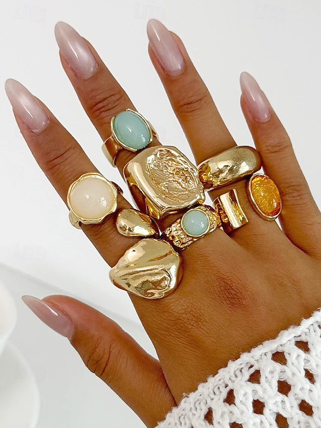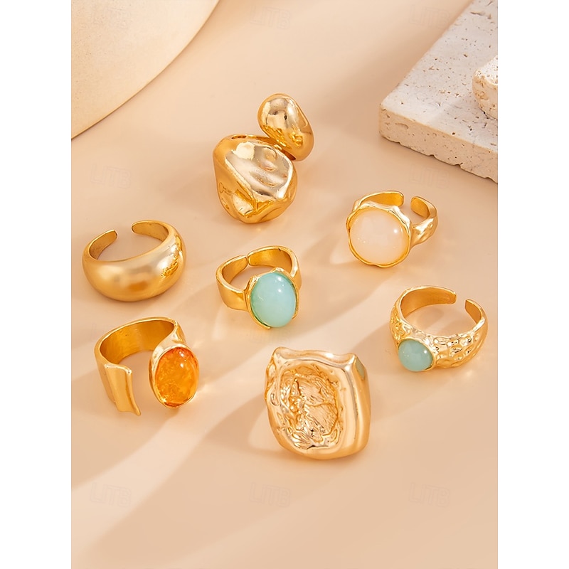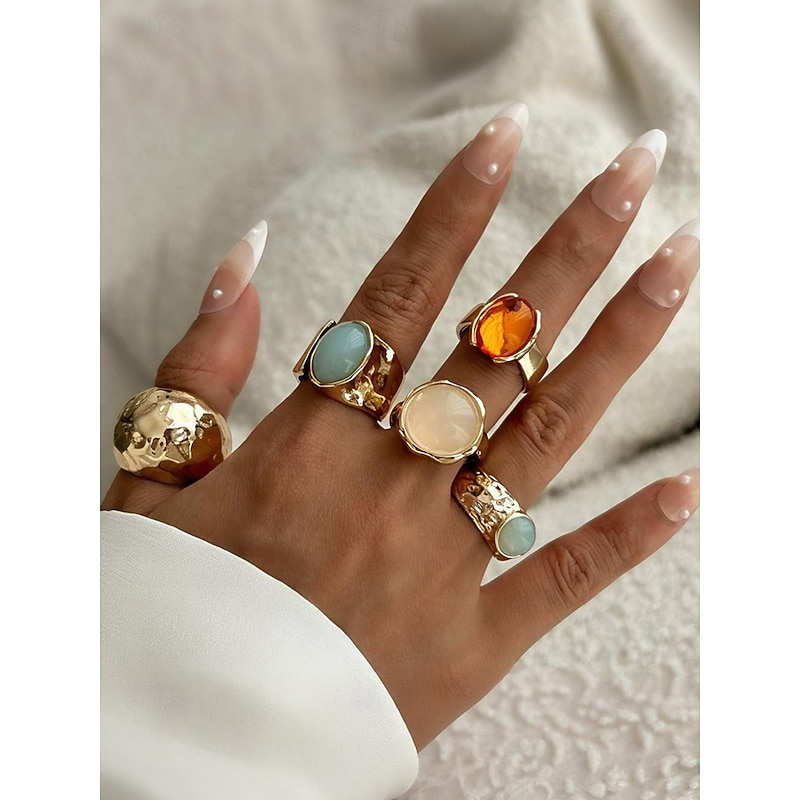 $12.68 - Women's Gold Vintage Gemstone Ring Set - Multi-piece set of statement chunky rings with hammered texture and colorful resin gemstones, Suitable for office,, Vintage fashion, Party and daily style 2025. Shop for cheap Women's Rings online? Buy at lightinthebox.com on sale today!