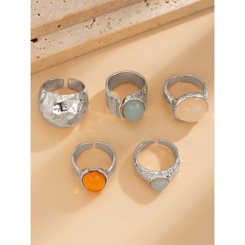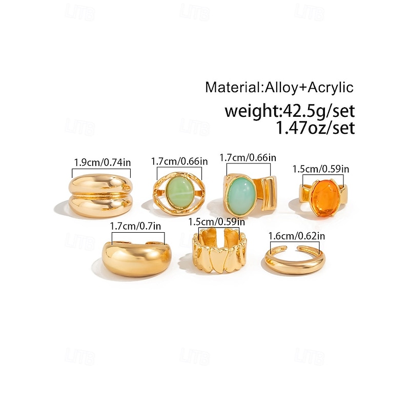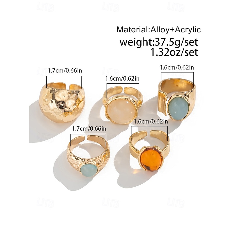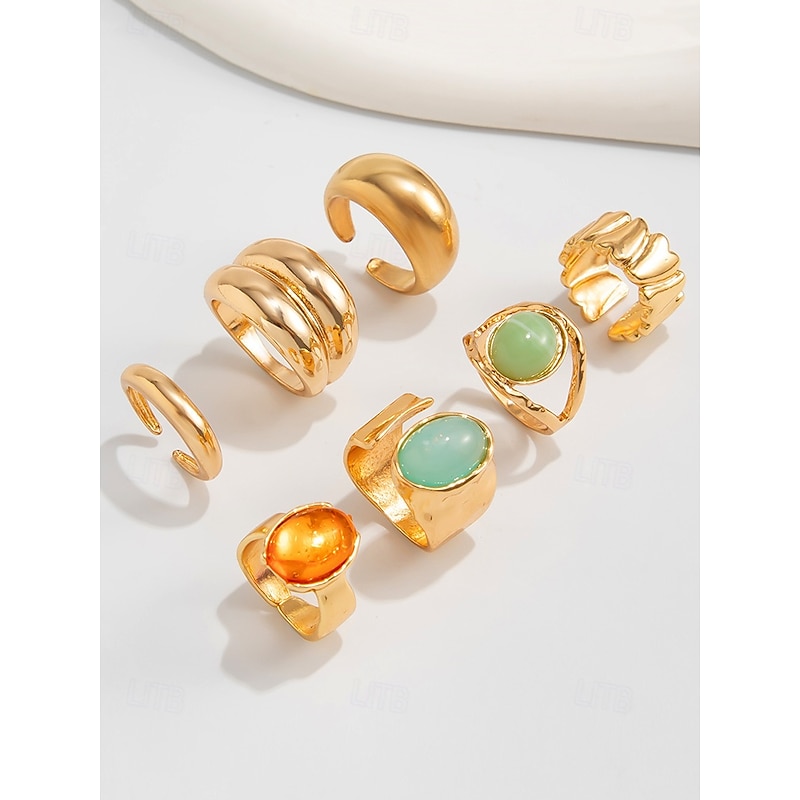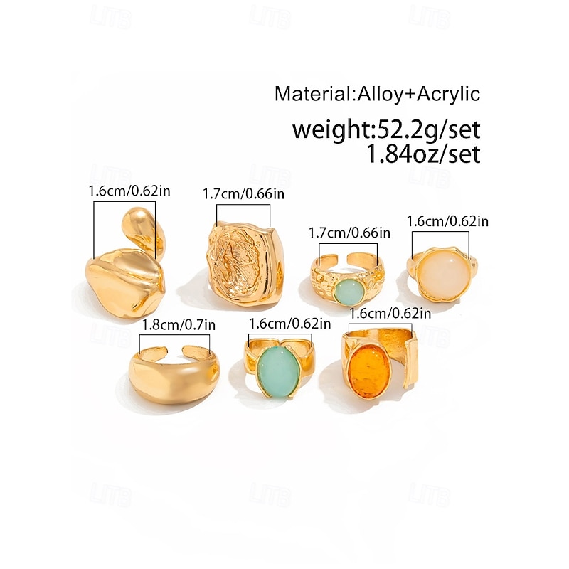 $12.68 - Women's Gold Vintage Gemstone Ring Set - Multi-piece set of statement chunky rings with hammered texture and colorful resin gemstones, Suitable for office,, Vintage fashion, Party and daily style 2025. Shop for cheap Women's Rings online? Buy at lightinthebox.com on sale today!