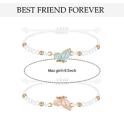 HOT ! MJartoria BFF Bracelets for 2-Butterfly Matching Bracelets Adjustable Strand Best Friends Bracelet Handmade Charm Friendship Bracelets Jewelry Gifts for Women Couples