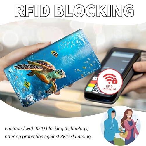 HOT ! Wallet Women Ultra Slim Thim PU Leather Womens Wallet RFID Blocking Credit Card Holder Bifold Long Ladies Billfold, Sea Turtle 02