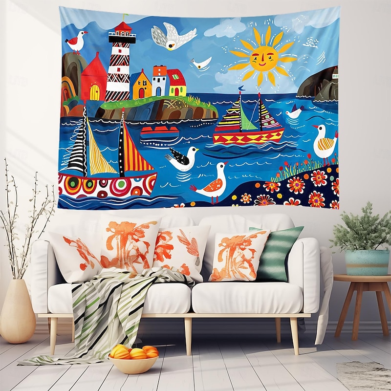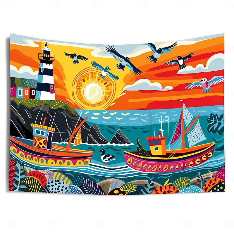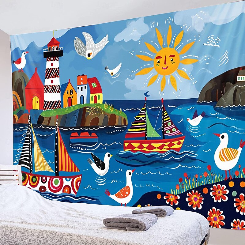HOT ! Sailing Landscape Hanging Tapestry Wall Art Large Tapestry Mural Decor Photograph Backdrop Blanket Curtain Home Bedroom Living Room Decoration