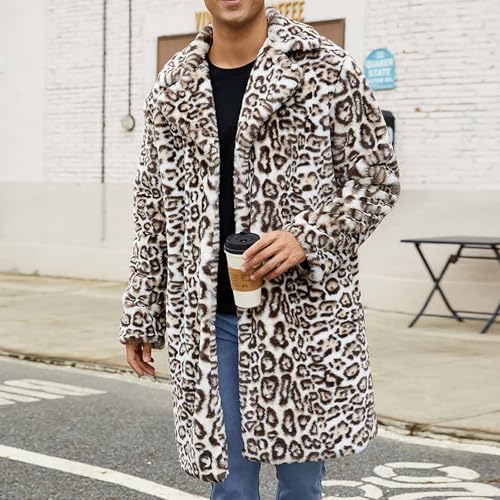 Men's Leopard Faux Fur Coat Long Jacket Winter Warm Windbreaker Overcoat 7