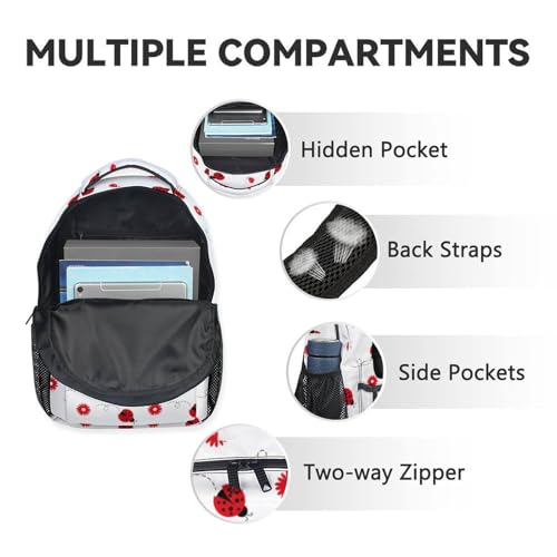 Custom School Backpack with Lunch Box Set for Kids, 3Pcs Ladybug Backpacks Matching Combo for Girls, Cute White Bookbag and Pencil Pouch Bundle 5