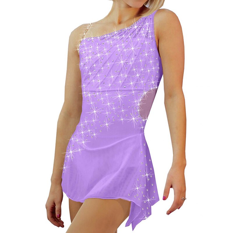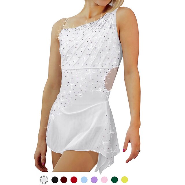 Figure Skating Dress Women's Girls' Ice Skating Dress Outfits Black White Yellow Spandex High Elasticity Training Competition Skating Wear Patchwork Crystal / Rhinestone Sleeveless Ice Skating Figure 11