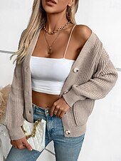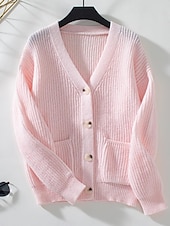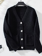 More information about Women's Cardigan Casual Pure Color V Neck Knitted Long Sleeve Regular Tops Knit Daily Black Pink Fall Winter