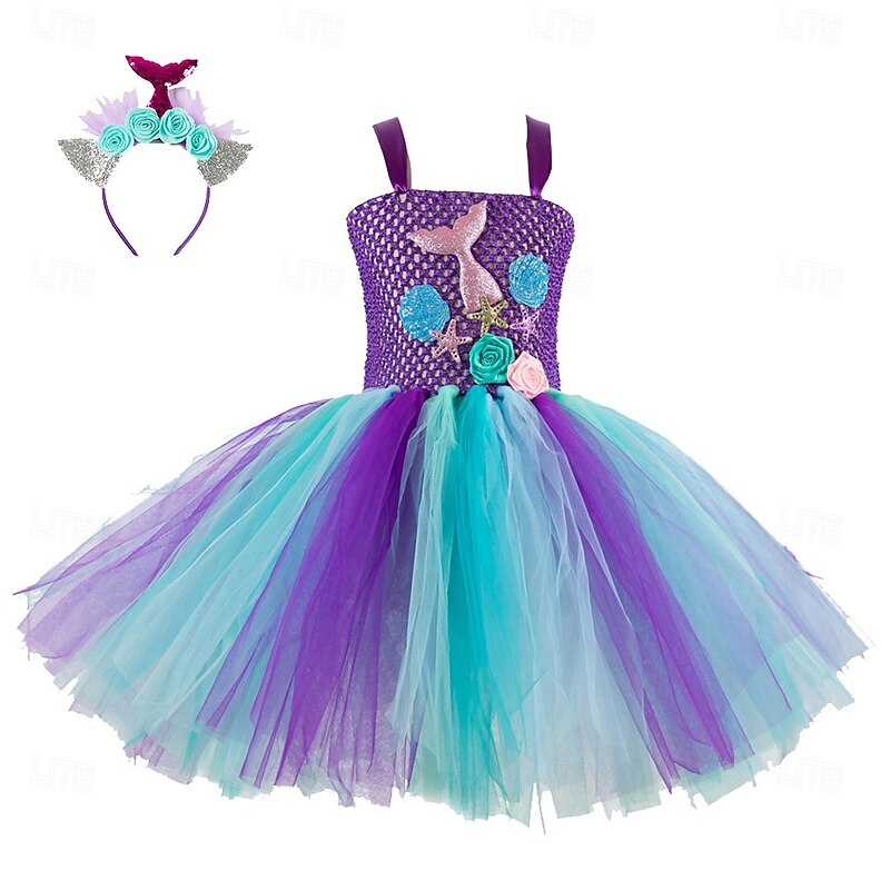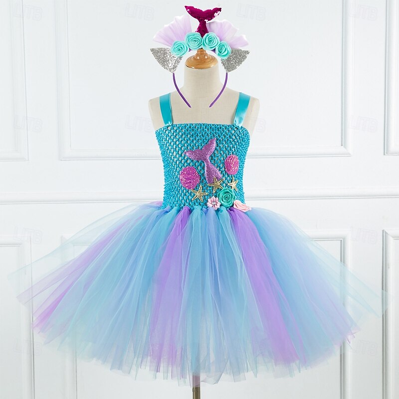 More information about Kids Girls' Cosplay Dress Party Dress Mermaid Sleeveless Performance Birthday Backless Patchwork Beautiful Sweet Polyester Maxi Party Dress Swing Dress A Line Dress Summer 4-12 Years Blue Sky Blue