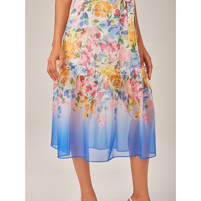 More information about Floral Print Chiffon Dress with Gradient Hem