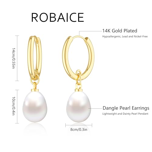 • Hypoallergenic Material: Elegant irregular/round cut pearl hoop earrings for women are crafted with 14k real gold plated, lead-free, nickel-free, and hypoallergenic. The small dangle pearl earrings makes it lightweight and non tarnish