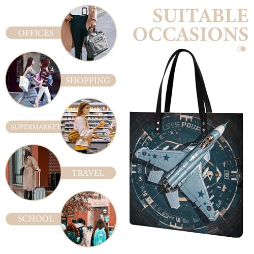• 【Sweet Surprise】Whether it's for working, shopping trips or festive parties, this Air Force Fighter Jet leather tote bag is a great choice. It serves as a wonderful surprise for women, combining practicality, style, and versatility.