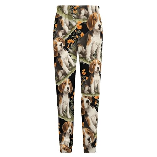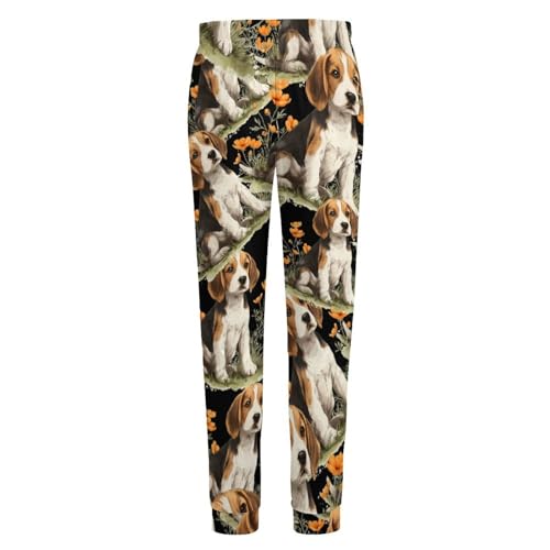Beagle Puppy Dog Orange Flower Men's Pajama Bottoms Sleep Lounge Soft Comfy Pants Sleepwear 4