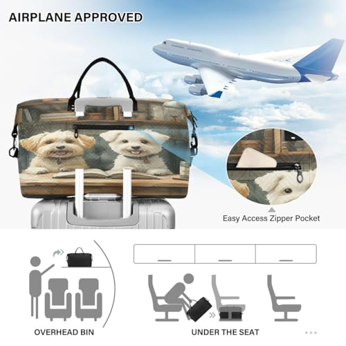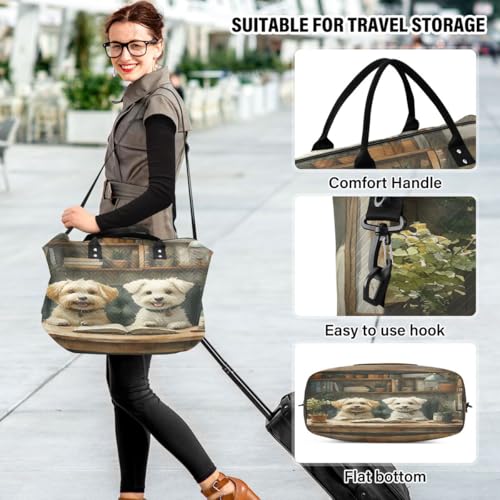 Dog Reading Book Vintage Travel Duffle Bag Gym Bag Weekender Bags with Toiletry Bag Travel Trip Tote Bag 4