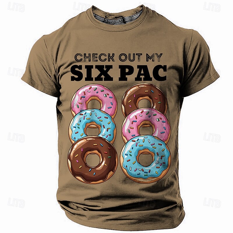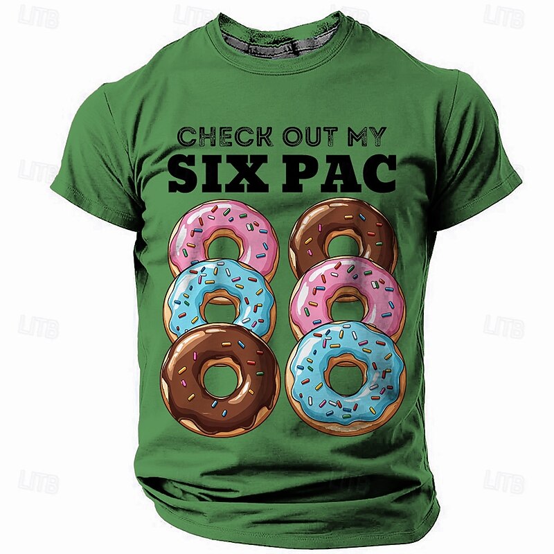 Men's Funny Donut 'Six Pac' Graphic Short Sleeve T-Shirt - Humorous Foodie Tee 17