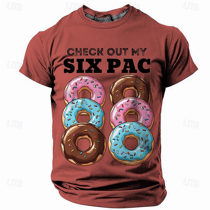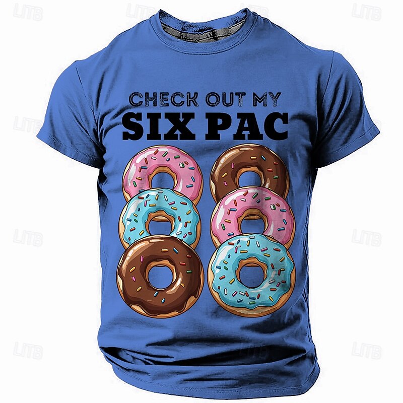 HOT ! Men's Funny Donut 'Six Pac' Graphic Short Sleeve T-Shirt - Humorous Foodie Tee