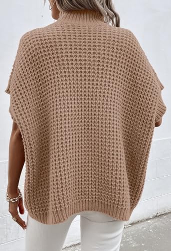 Pink Queen Women's Mock Neck Batwing Short Sleeve Loose Oversized Knit Pullover Sweater Vest Jumper Tops 6