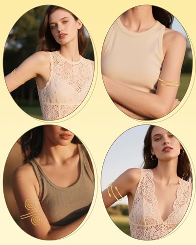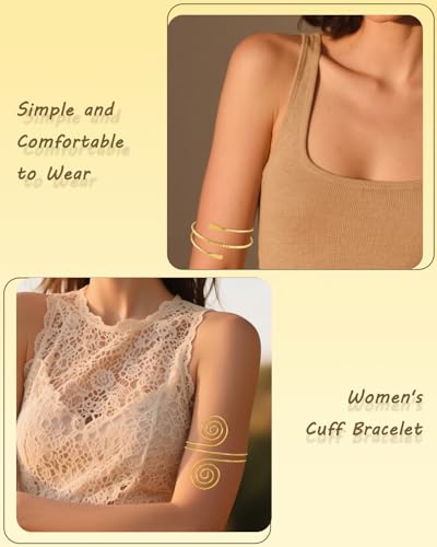 • Unique Design: These armbands feature a sleek and modern design with a shiny gold coating, adding a touch of elegance and sophistication to any outfit. The open spiral design makes them easy to put on and take off, and they can be adjusted to fit any arm size.