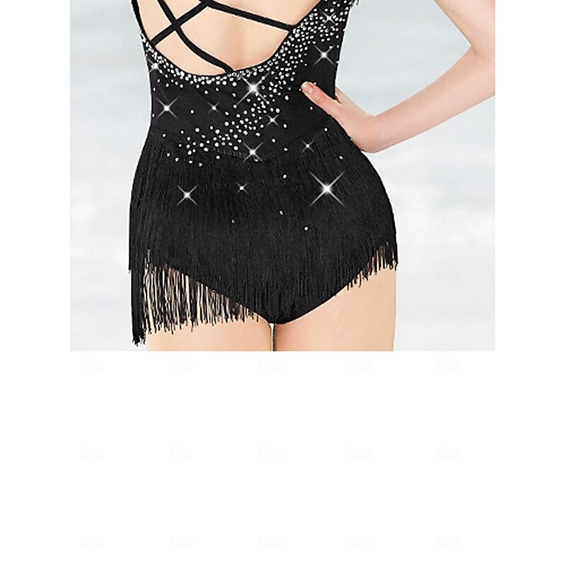 More information about Figure Skating Dress Women's Girls' Ice Skating Dress Black Patchwork Tassel Mesh Spandex Stretchy Training Practice Professional Skating Wear Crystal / Rhinestone Ice Skating Figure Skating