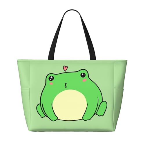 Frog Large Beach Bag for Women Travel Tote Bags with Zipper and Pocket for Pool Gym Camping 1