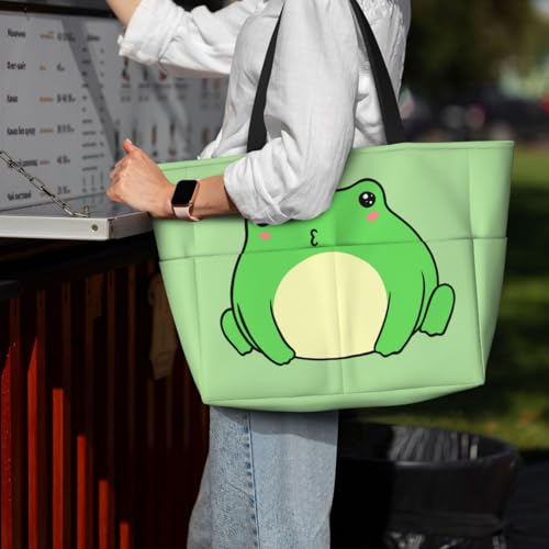 Frog Large Beach Bag for Women Travel Tote Bags with Zipper and Pocket for Pool Gym Camping 5