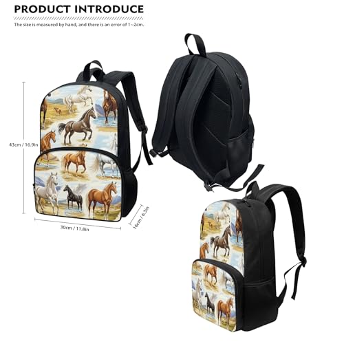 Kids Cute Animal Print 17 Inch School Bag with Insulated Lunch Bag Horse Backpack for Girls Boys 6-8 8-12 Lightweight School Backpack with Lunch Box 1
