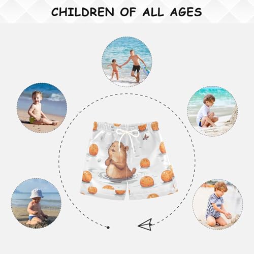 Pigsaly Boys' Swim Board Shorts Cute Capybara Orange Boy's Swim Trunks Kids Swimwear 3T 4