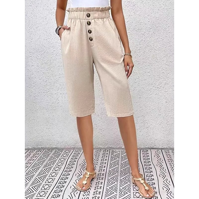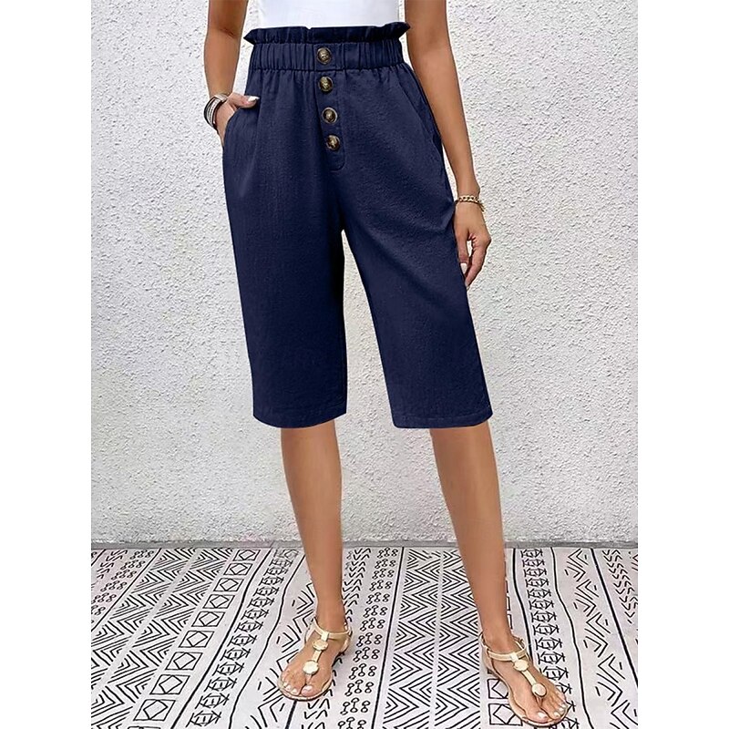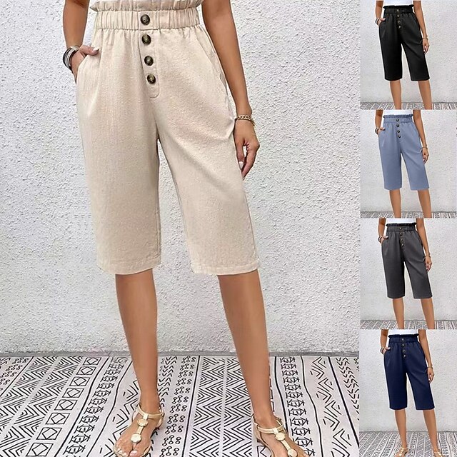 More information about Women's Chinos Shorts Solid Color Capri Pants Basic Casual Knee Length High Waist Plain Pocket Elastic Waist Comfort Outdoor Micro-elastic Vacation Street Daily Navy-blue Dark Grey Black Light Blue
