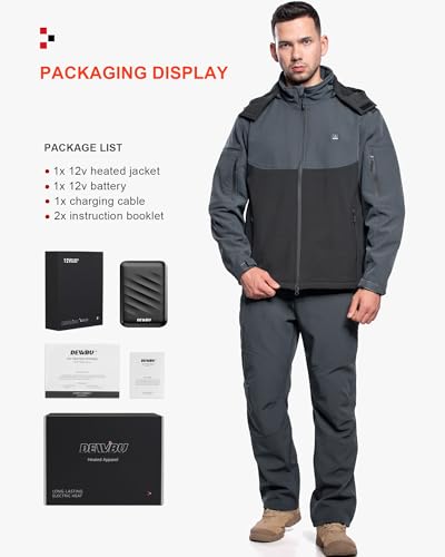 DEWBU Soft Shell Heated Jacket for Men with 12V Battery Pack and Detachable Hood Outdoor Electric Heating Coat 6