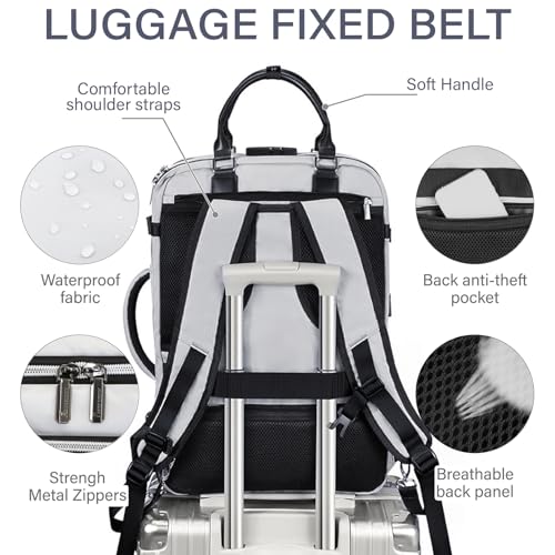 Travel Backpack for Women, 50L Carry On with USB Charging Port, Anti Theft, 17.3 Inch Laptop Compatible, White, Large 5