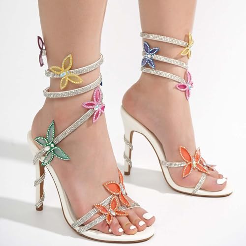 Women Rhinestone Butterfly Spiral Wrap Around High Heel Sandals Rhinestone Sparkly Stiletto Heel Sandals 6