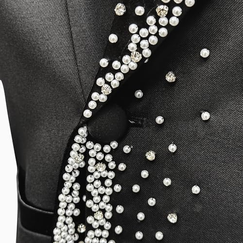 • Stylish Design: This men's blazer features a sleek black color with eye-catching rhinestone embellishments along the peaked lapel and front for a dazzling look.