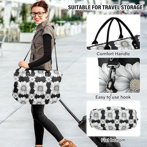 Flowers Black Diamonds Decorative Carry On Personal Item Bags Sport Training Bag with Toiletry Bag for Airplane Traveling Foldable bolso de para Mujer Avion 7