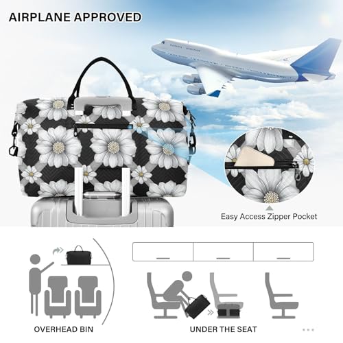 HOT ! Flowers Black Diamonds Decorative Carry On Personal Item Bags Sport Training Bag with Toiletry Bag for Airplane Traveling Foldable bolso de para Mujer Avion