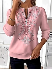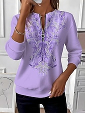More information about Women's Pullover Sweatshirt Zip Up Sweatshirts Floral Graphic Paisley Fashion Casual Long Sleeve Crew Neck Regular Tops Street Dailywear Casual Zipper Print Yellow Pink Light Purple Light Blue Fall