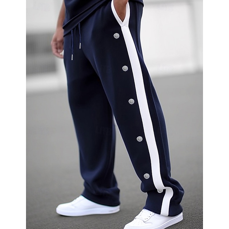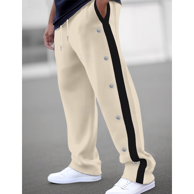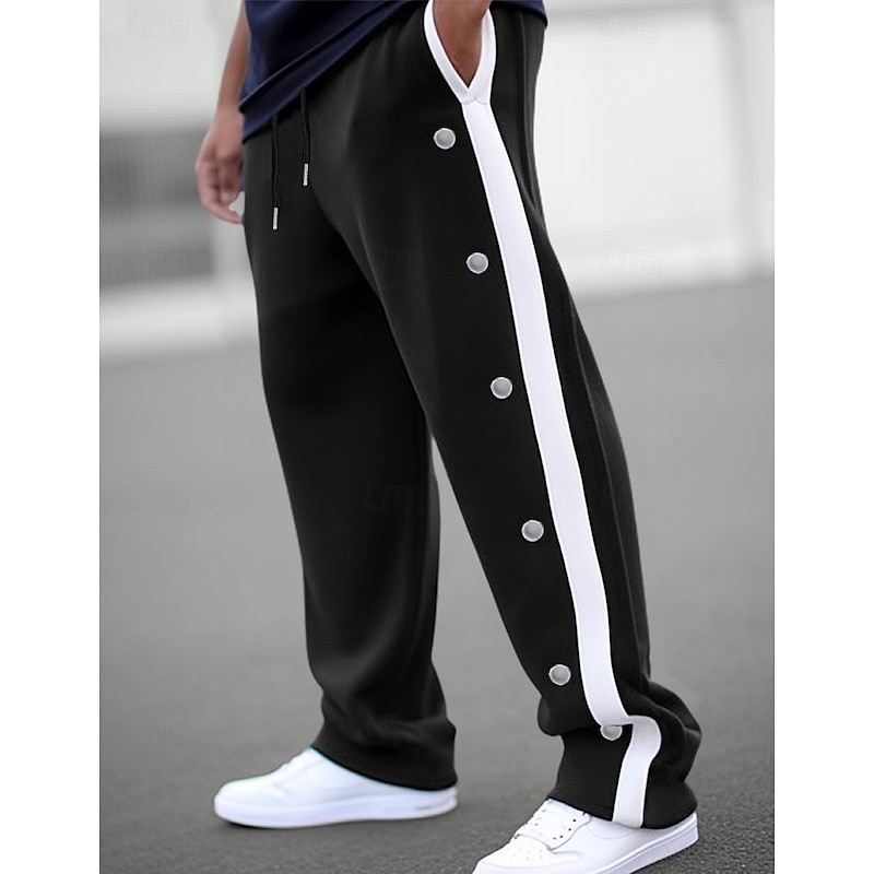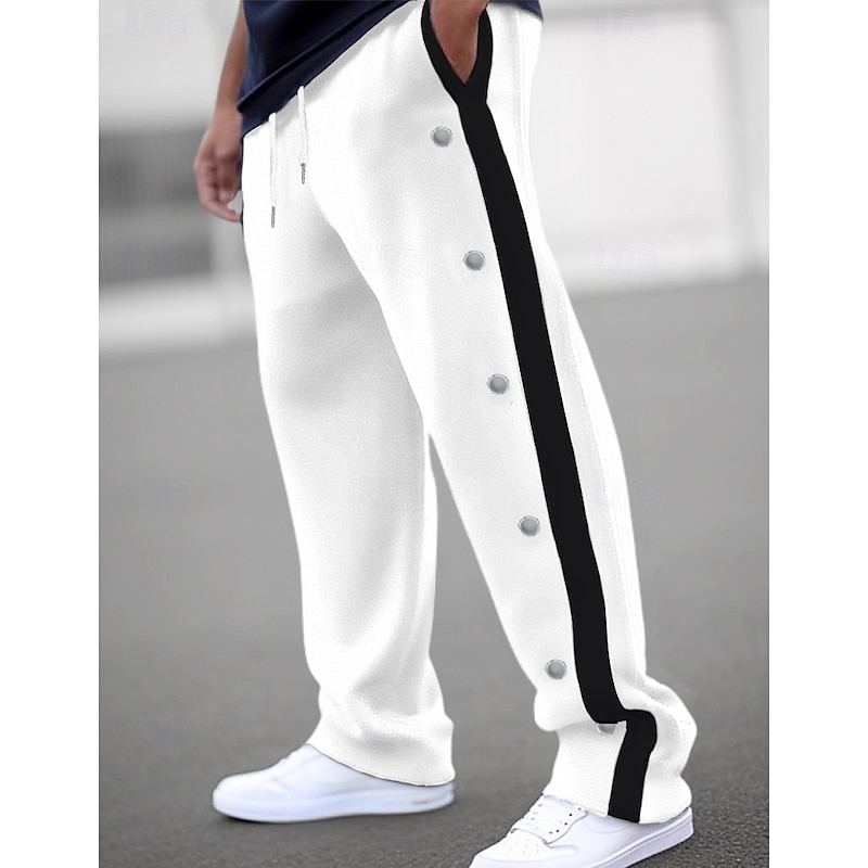 More information about Men's Sweatpants Wide Leg Sweatpants Joggers Trousers Straight Leg Sweatpants Drawstring Elastic Waist Side Button Plain Comfort Breathable Outdoor Daily Going out Fashion Casual Black White