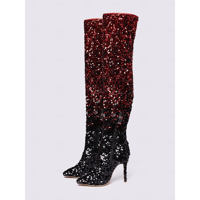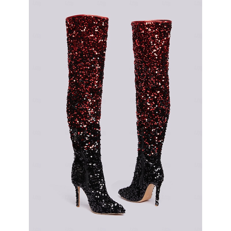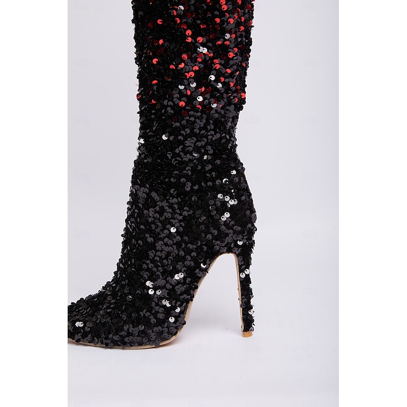 More information about Women's Black and Red Sequin Over-the-Knee Boots – Sexy Stiletto High Heel Party Boots for Bold Fashion Statements