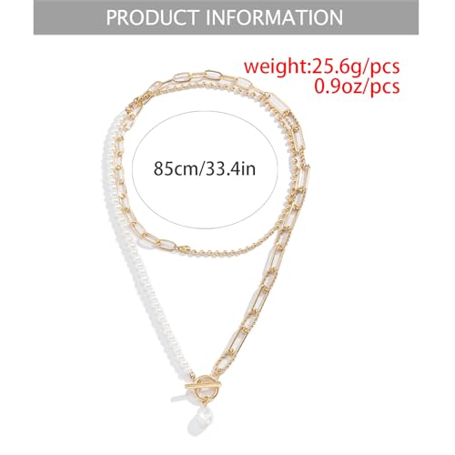 • Layered Pearl Necklace:Retro baroque pearl OT toggle choker,half of it are baroque pearls beaded,another half is the paperclips link chains and the toggle clasp makes it easy to put on and take off the necklaces