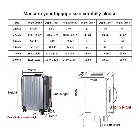 • Please Notice the Size:please be sure to carefully measure the size of your suitcase(not included wheels height).different brand with different length width heigth even with same size, pls measure the size carefully before buying