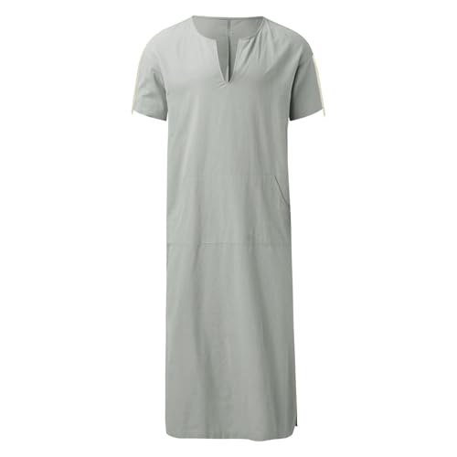 Throbe Islam for Men Muslim Eid Kaftan Short Sleeve V Neck Cotton Robe Plus Size Arabic Middle Eastern Dubai Thobe 4