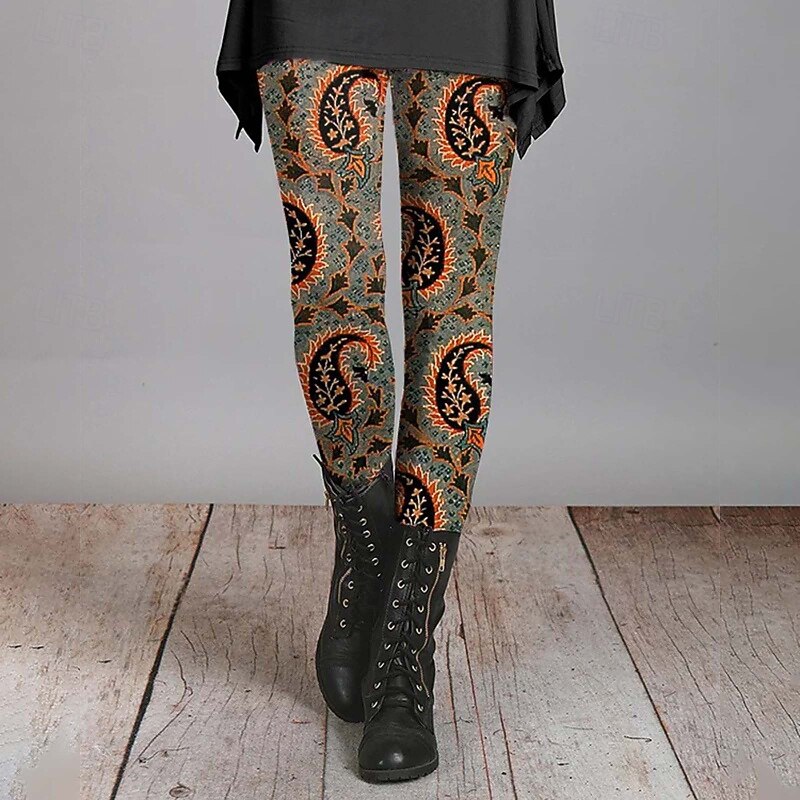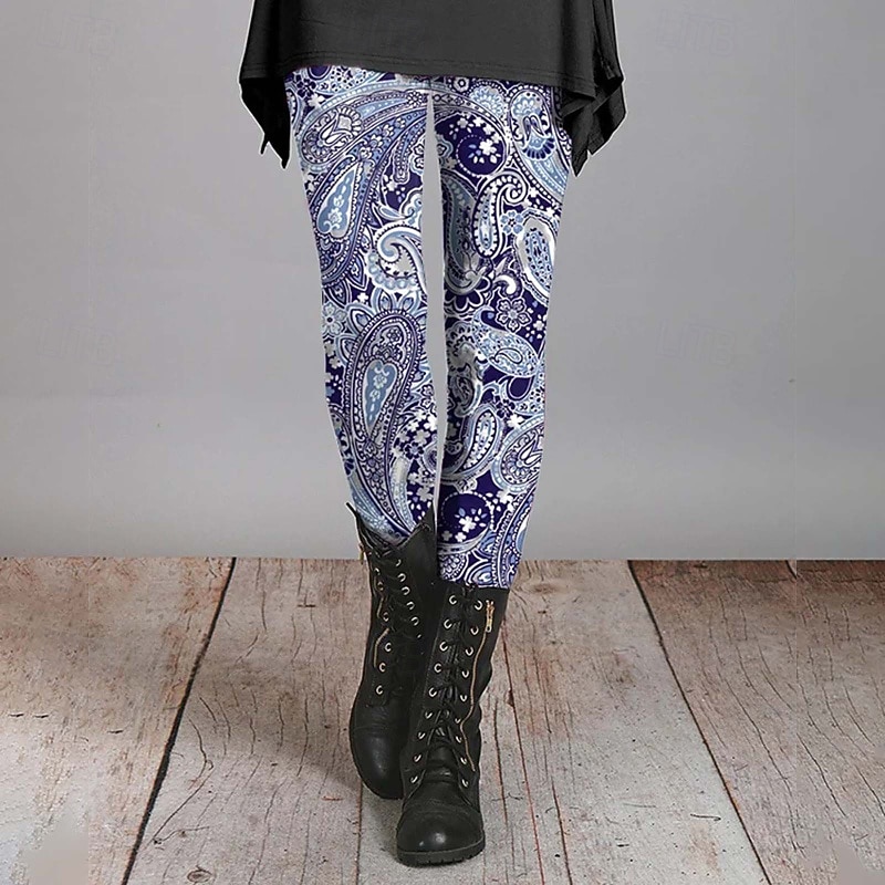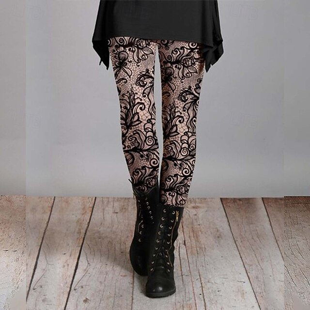HOT ! Women's Slacks Leggings Cozy Leggings Streetwear Casual Full Length Natural Flower Elastic Waist Print Comfy Outdoor Comfortable Outdoor Vacation Weekend Navy Pink Dark Green Fuchsia Fall Regular Fit