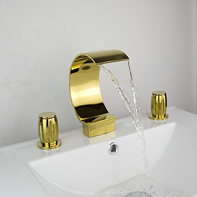 HOT ! Widespread Bathroom Sink Faucet,Two Handle Three Holes, Brass Waterfall Chrome Bath Taps
