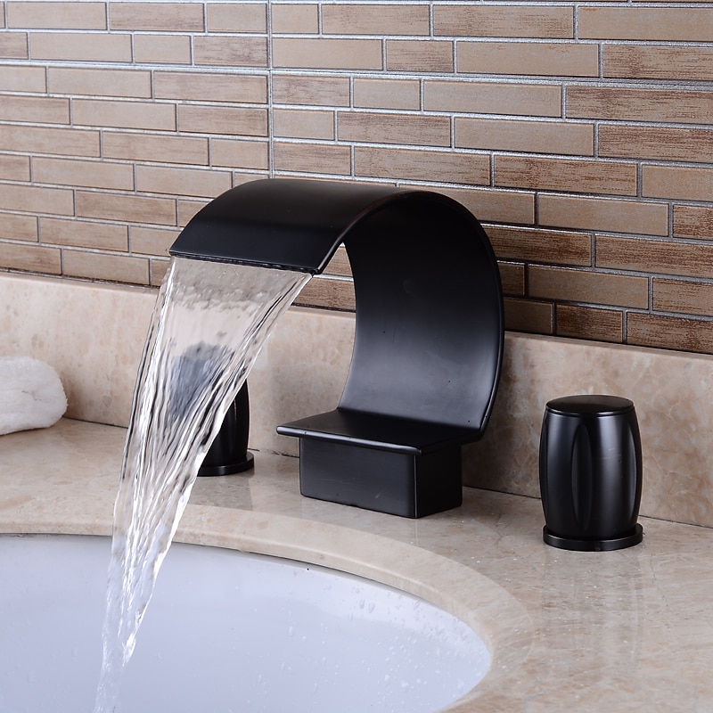 More information about Widespread Bathroom Sink Faucet,Two Handle Three Holes, Brass Waterfall Chrome Bath Taps