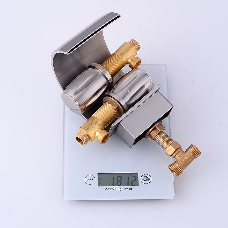 Widespread Bathroom Sink Faucet,Two Handle Three Holes, Brass Waterfall Chrome Bath Taps 7